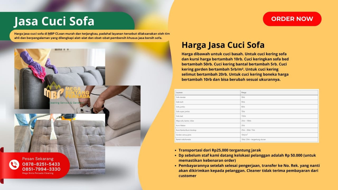 Pesan berbagai macam layanan jasa kebersihan dan perawatan perabotan rumah Anda melalui Website Kami di Bawah ini